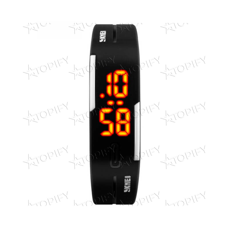 При первом взгляде на наручные часы SKMEI 1099 может показаться, что это стильный браслет или пульсометр. Минималистичный дизайн идеально подойдет спортсменам и любителям активного отдыха. Специальная анатомическая форма корпуса обеспечивает удобную фиксацию на запястье. Управление одной кнопкой дает возможность не отвлекаясь переключать функции.